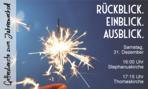 - Gottesdienste zum Jahreswechsel Am Samstag, 31. Dezember, finden folgende Gottesdienste in unseren Gemeinden statt: Am Samstag, 31. Dezember, finden folgende Gottesdienste in unseren Gemeinden statt: